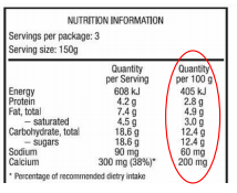 - Per 100g → how to compare products